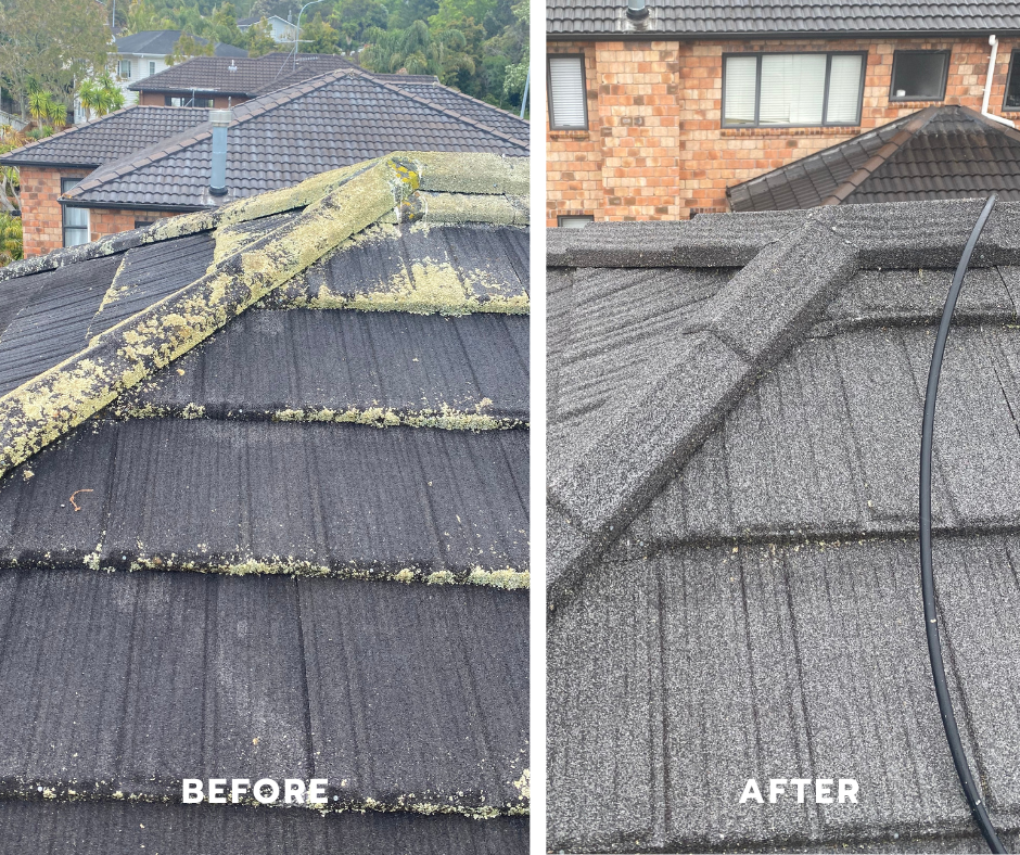 A roof clean removes surface grime, lichen and moss immediately. A roof treatment is a chemical application that kills organic growth over time (typically 3–4 months, but this depends on severity).